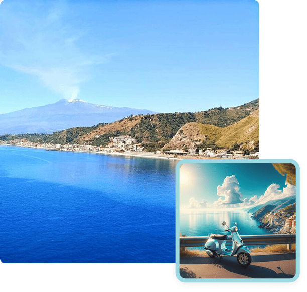 Rent your VESPA from VESPARUN and set off for a new adventure along the spectacular coastal road of Taormina and Mount Etna!